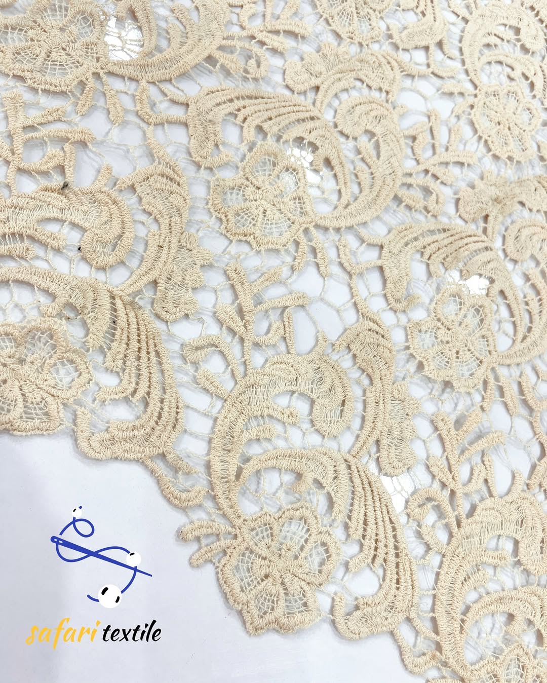 این پارچه یکی از بهترین انتخابها برای دوخت لباسهای خاص و مجلسیه! برای این پارچه معمولاً به لایی یا آستر نیاز دارید، مگر اینکه بخواید بدننما بودنش رو توی طراحی لباستون به نمایش بذارید.